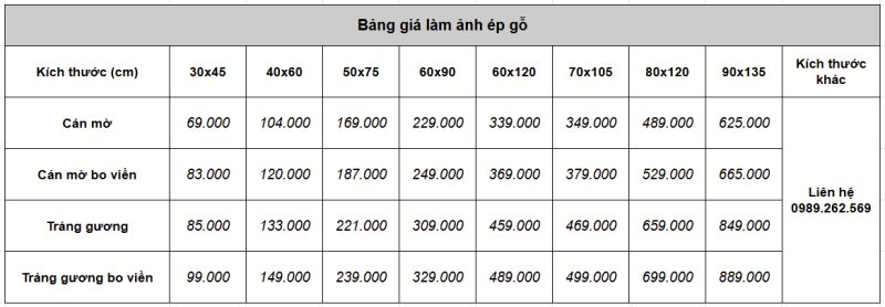 – Ảnh ép gỗ: mặt trước cán màng mờ đảm bảo hình ảnh tươi trong, mặt sau ép gỗ. Giá thành rẻ, gọn nhẹ và bền