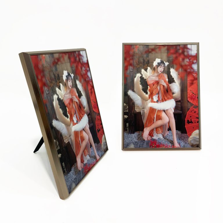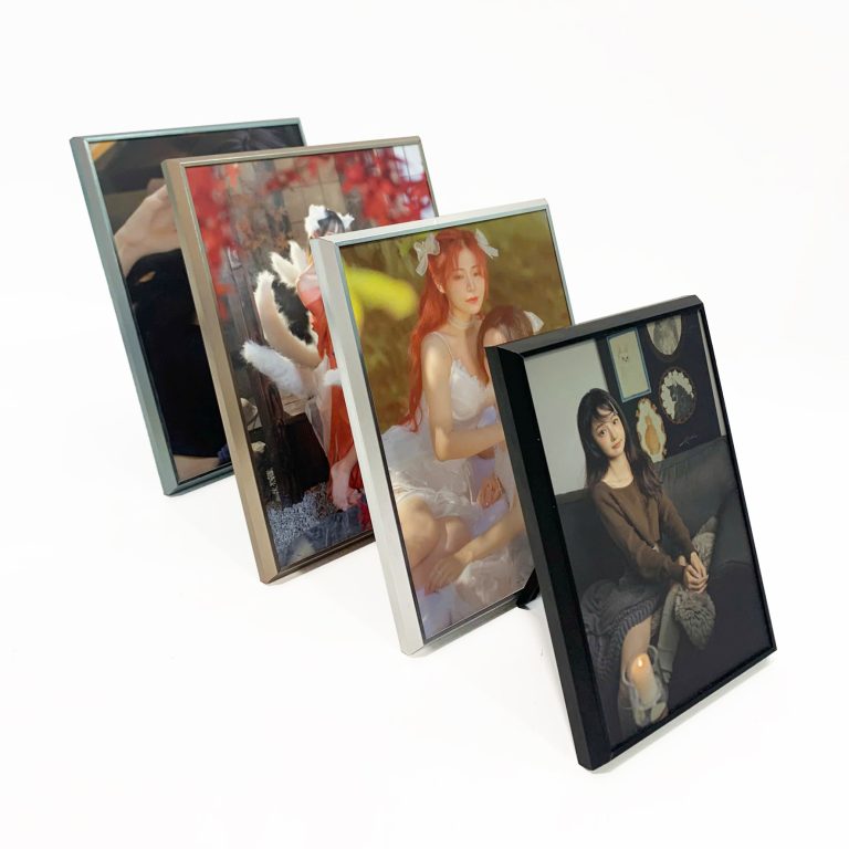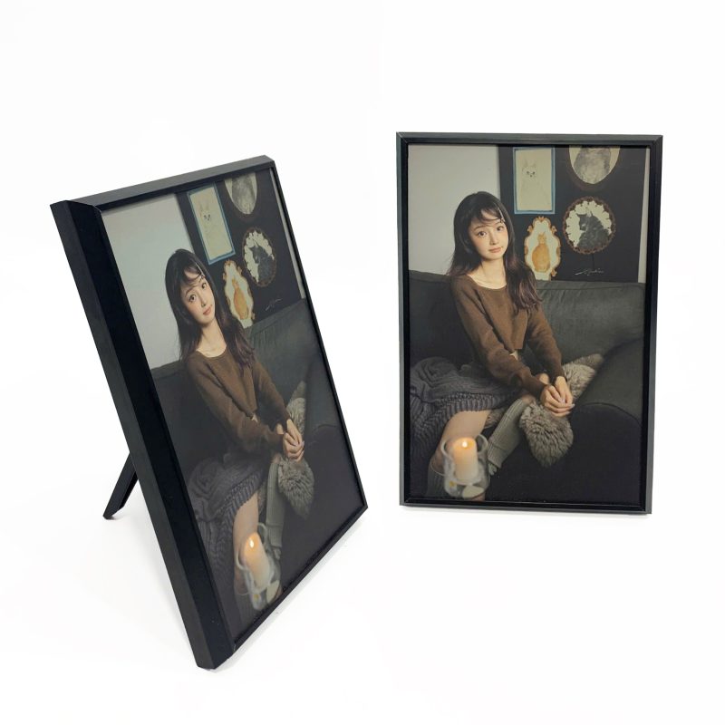 + Mặt hình in giấy ảnh và ốp nguyên tấm mica dày trong suốt lên bề mặt, lồng bên ngoài là khung nhôm titan mỏng sang trọng và hiện đại