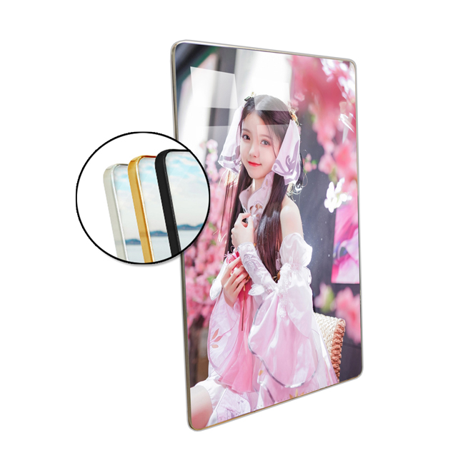 – Ảnh pha lê tràn viền: mặt hình gương HD cực trong và sáng bóng, viền nổi tinh tế và sang trọng, góc hình bo tròn. Là dòng sản phẩm cao cấp được khách hàng ưa chuộng nhiều